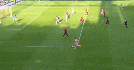 回顾本场比赛,上半场梅西就抽射造险,约翰逊屡献神扑。第45分钟,迈阿密抓住反击机会打破僵局,阿尔巴左路下底传到禁区,后点的阿连德头球破门,帮助迈阿密取得领先。随后第59分钟,奥索里奥右路直塞球传到禁区,拉耶倒三角传到门前,米哈洛维奇推射破门,多伦多扳平比分。